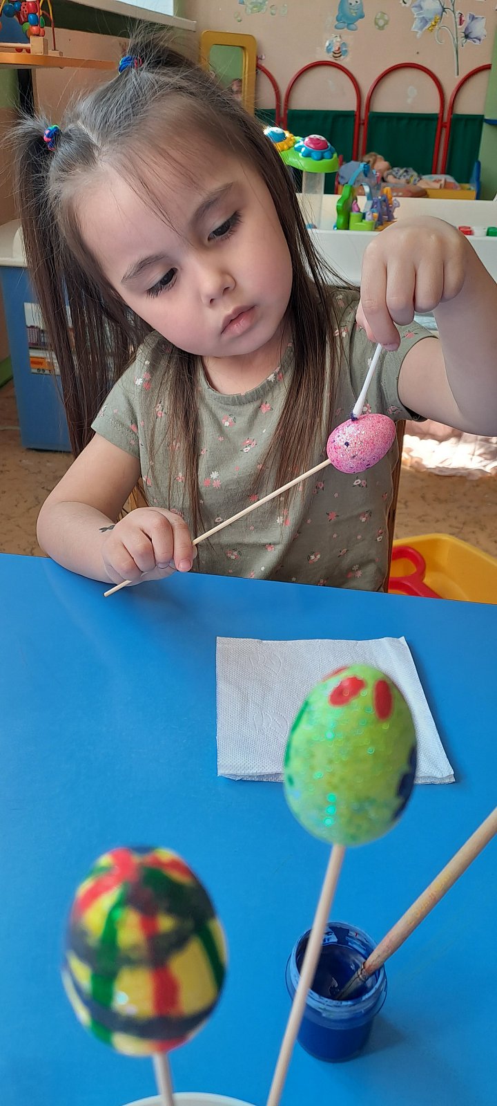 Каждый ребенок проявил свои таланты и фантазию, создавая уникальные и красочные пасхальные украшения. Это замечательное занятие не только способствует развитию художественных навыков, но и помогает детям погрузиться в атмосферу весеннего праздника.