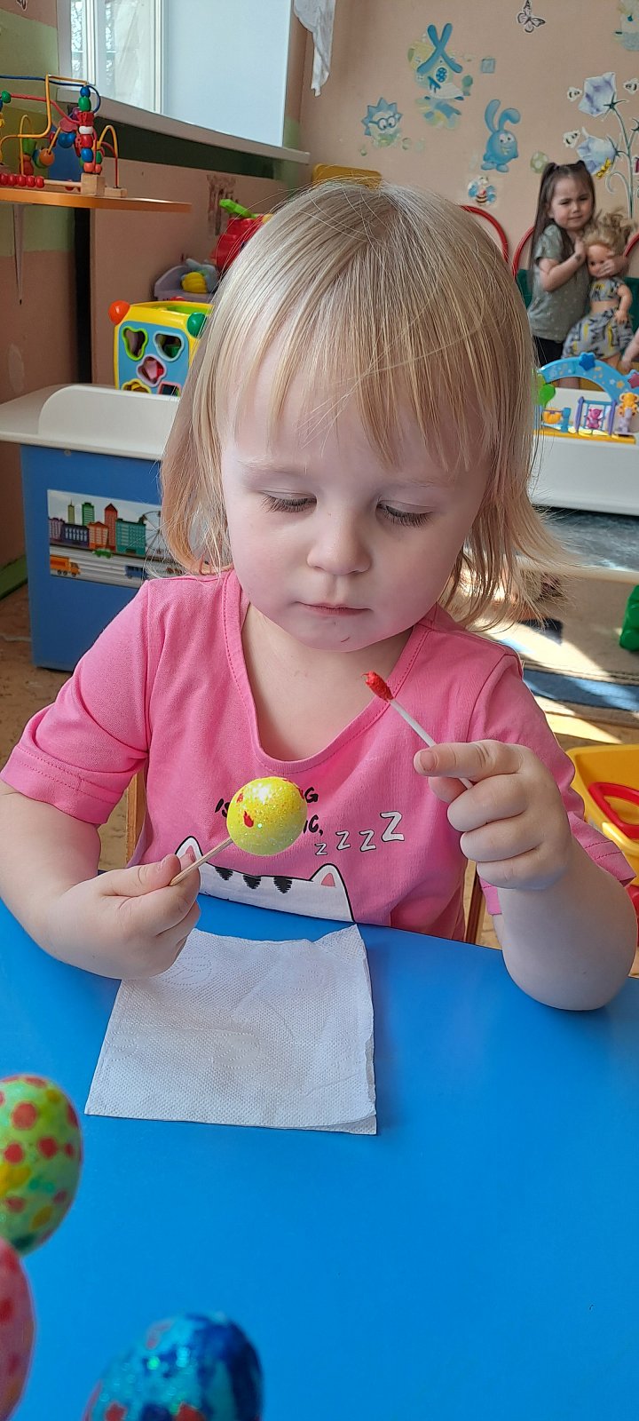 На прошлой неделе в группе "Ладушки" прошло тематическое занятие: "Красим яйца к Пасхе".