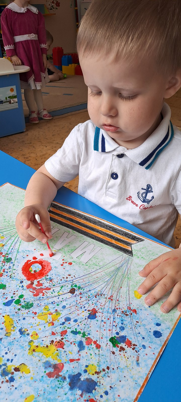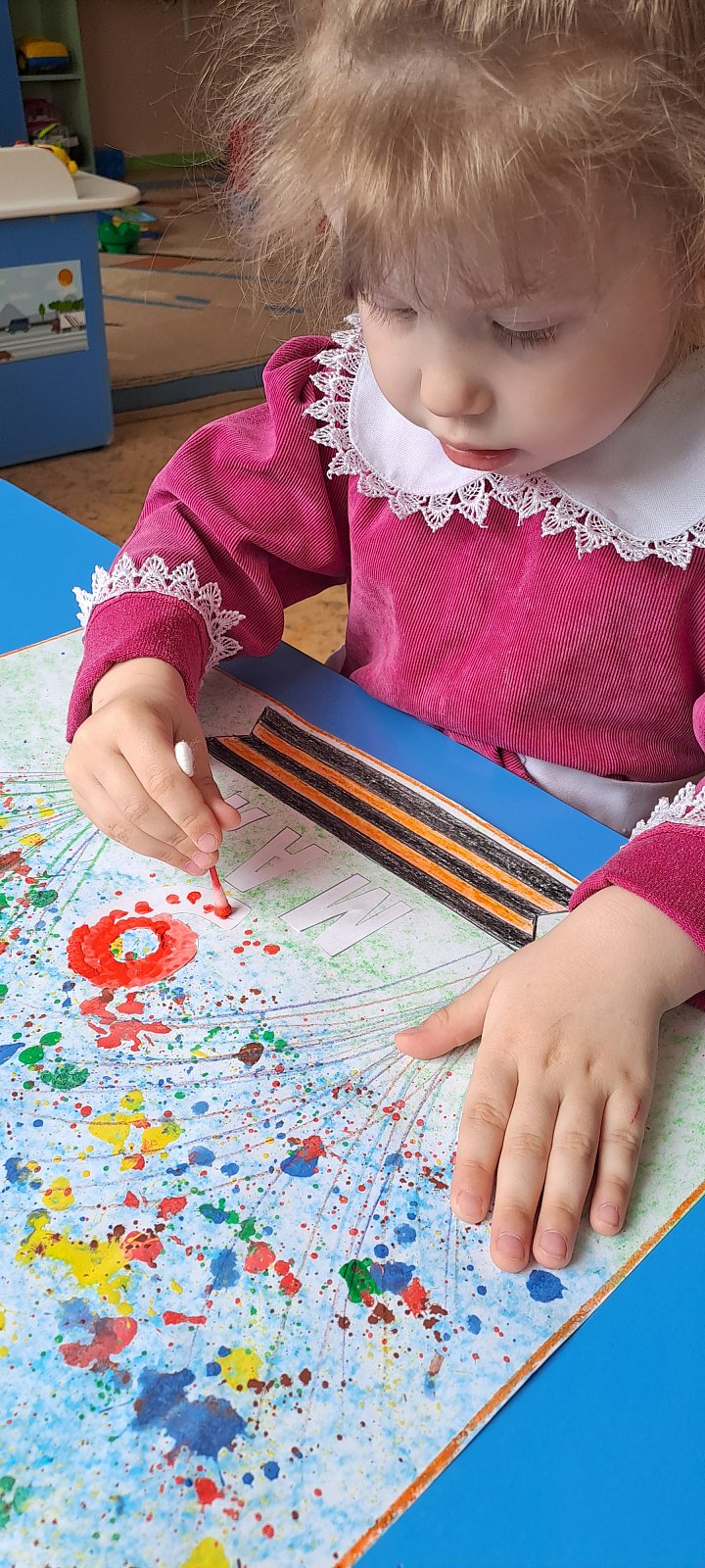Каждый ребенок смог сотворить своё чудо - нарисовать салют необычным способом. Салют получился красивый и малыши с гордостью показали свою работу родителям.