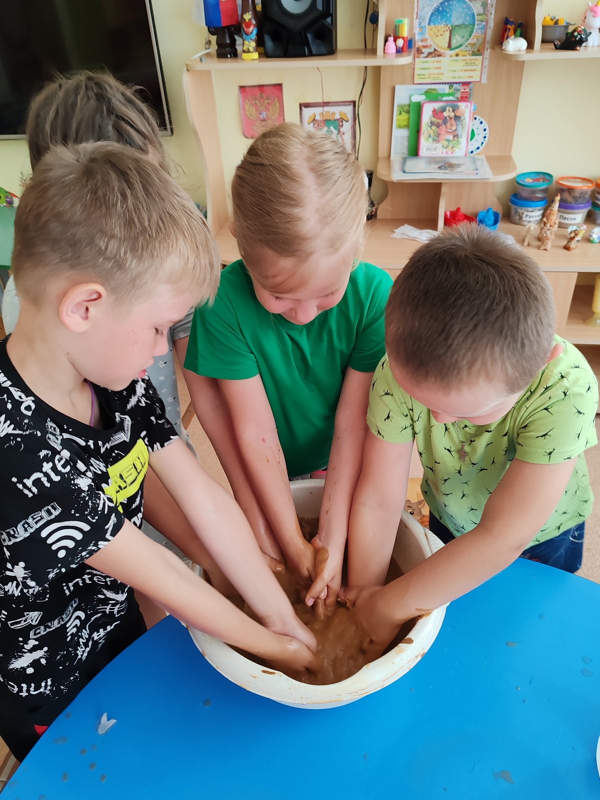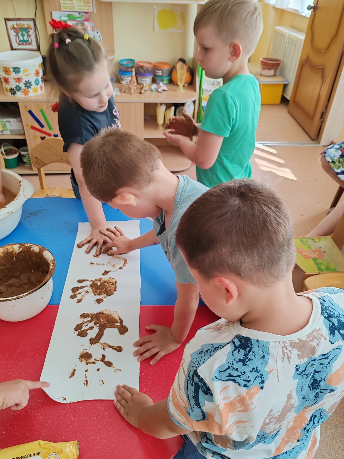 Вместе с ребятами воспитатели готовят глину для творчества. Обсуждают, что можно из неё слепить, делятся секретами и показывают разные приёмы. Дошколята с радостью погружаются в процесс, учатся быть внимательными, аккуратными и терпеливыми.