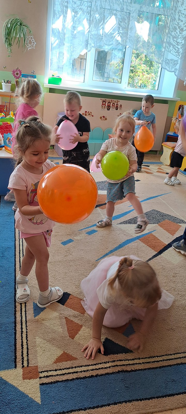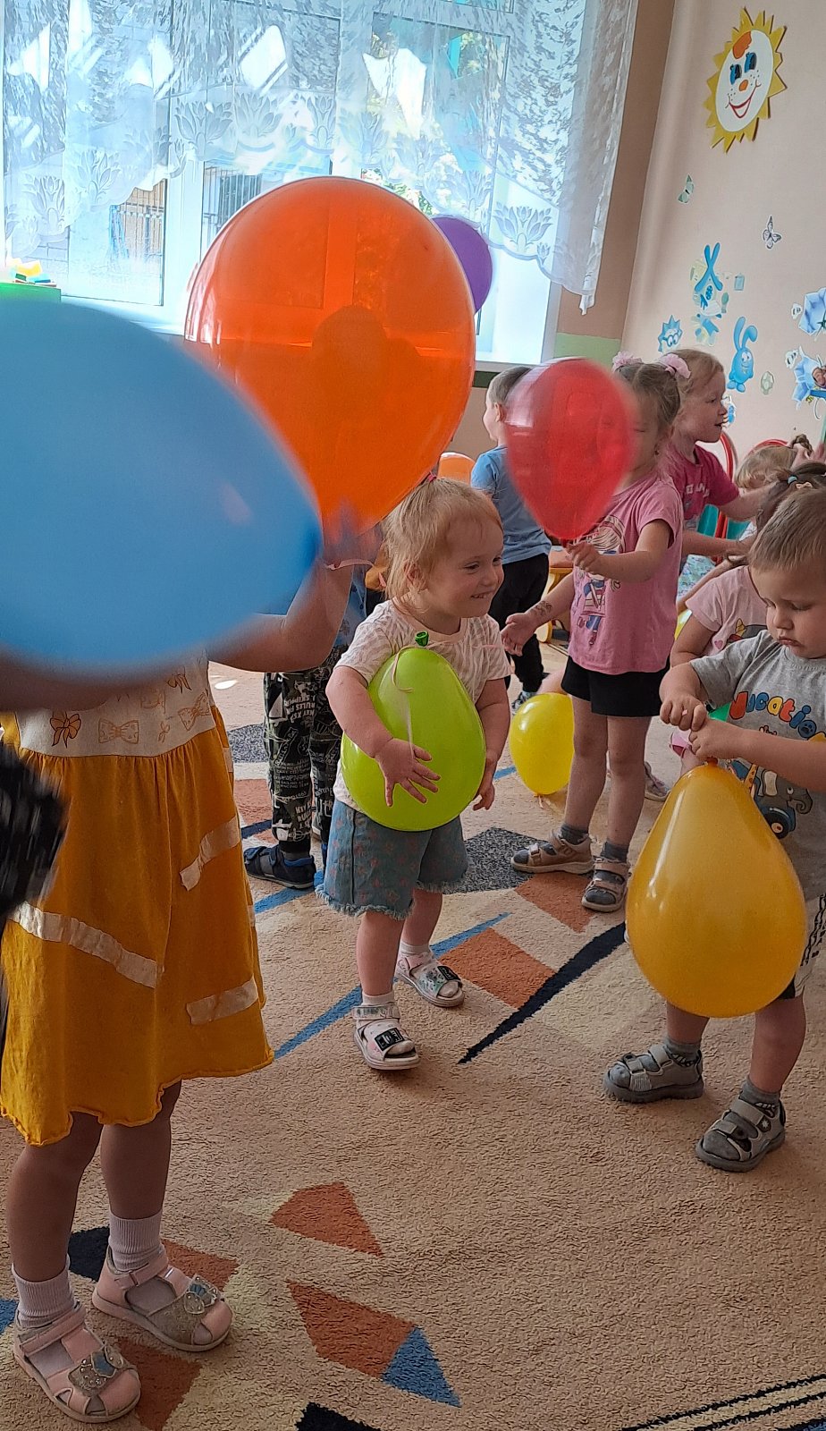 Сегодня в группе «Ладушки» воспитатели совместно с ребятами провели опыты «Тонет - не тонет», «Поющий шарик», играли в игры «Кто выше», «Поймай шарик»,«Жадина» .На занятиях по изо-деятельности дети с удовольствием раскрасили шары в любимые цвета.