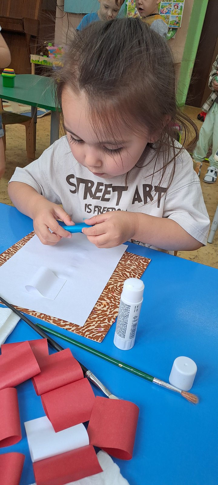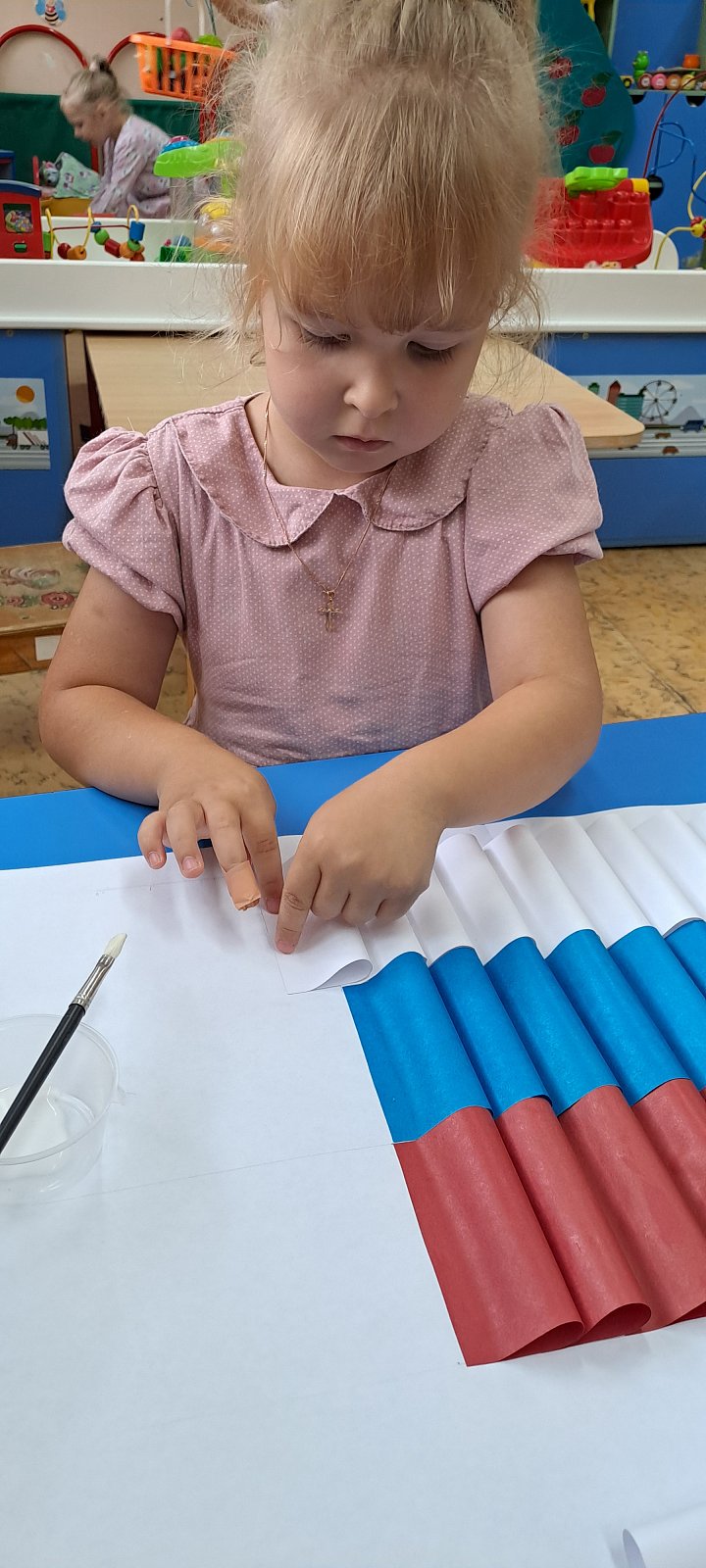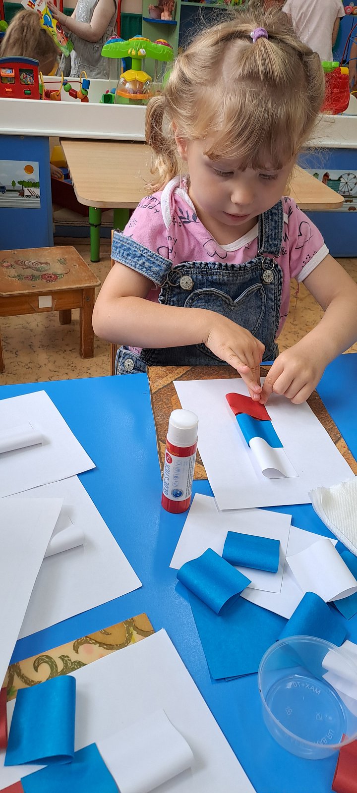 Вместе с воспитателями ребята узнали, что означают цвета российского триколора, и почему флаг так важен для каждого гражданина. Дети с большим удовольствием мастерили аппликации российского флага. Старательно подбирали цвета и клеили полосочки, создавая свой маленький символ большой страны!