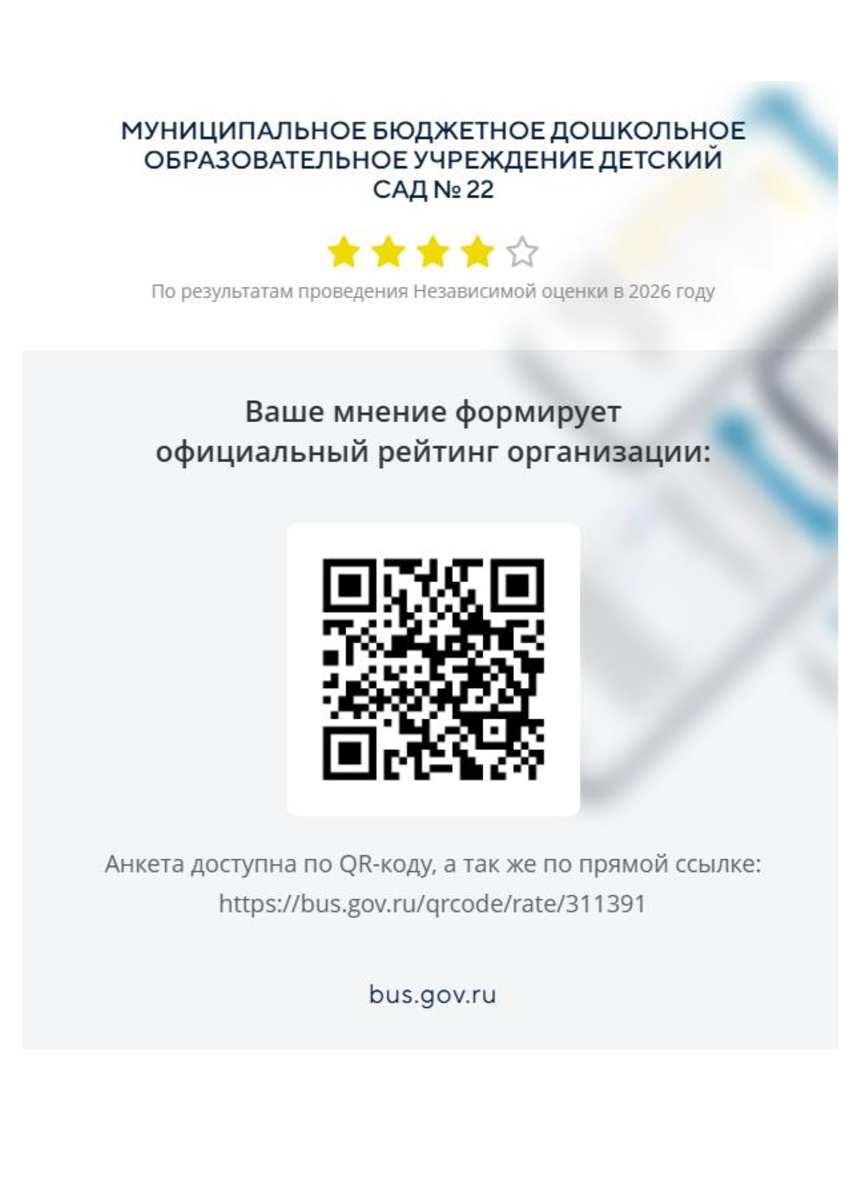 Оценить качество условий осуществления образовательной деятельности в нашем детском саду Вы можете пройдя по данному QR-коду: